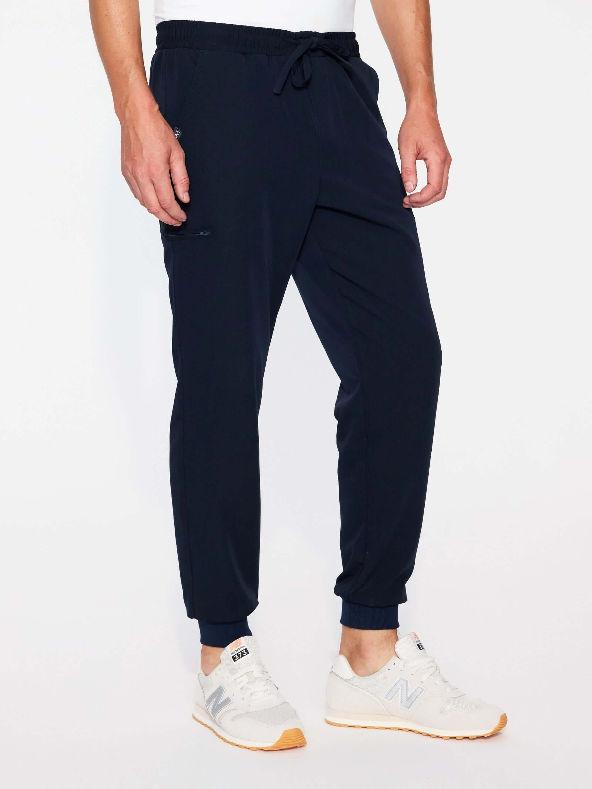 - joggery medyczne męskie GENUS – mają krój typu jogger, charakteryzujący się ściągaczem na dole nogawki, przez co są bardziej sportowe;