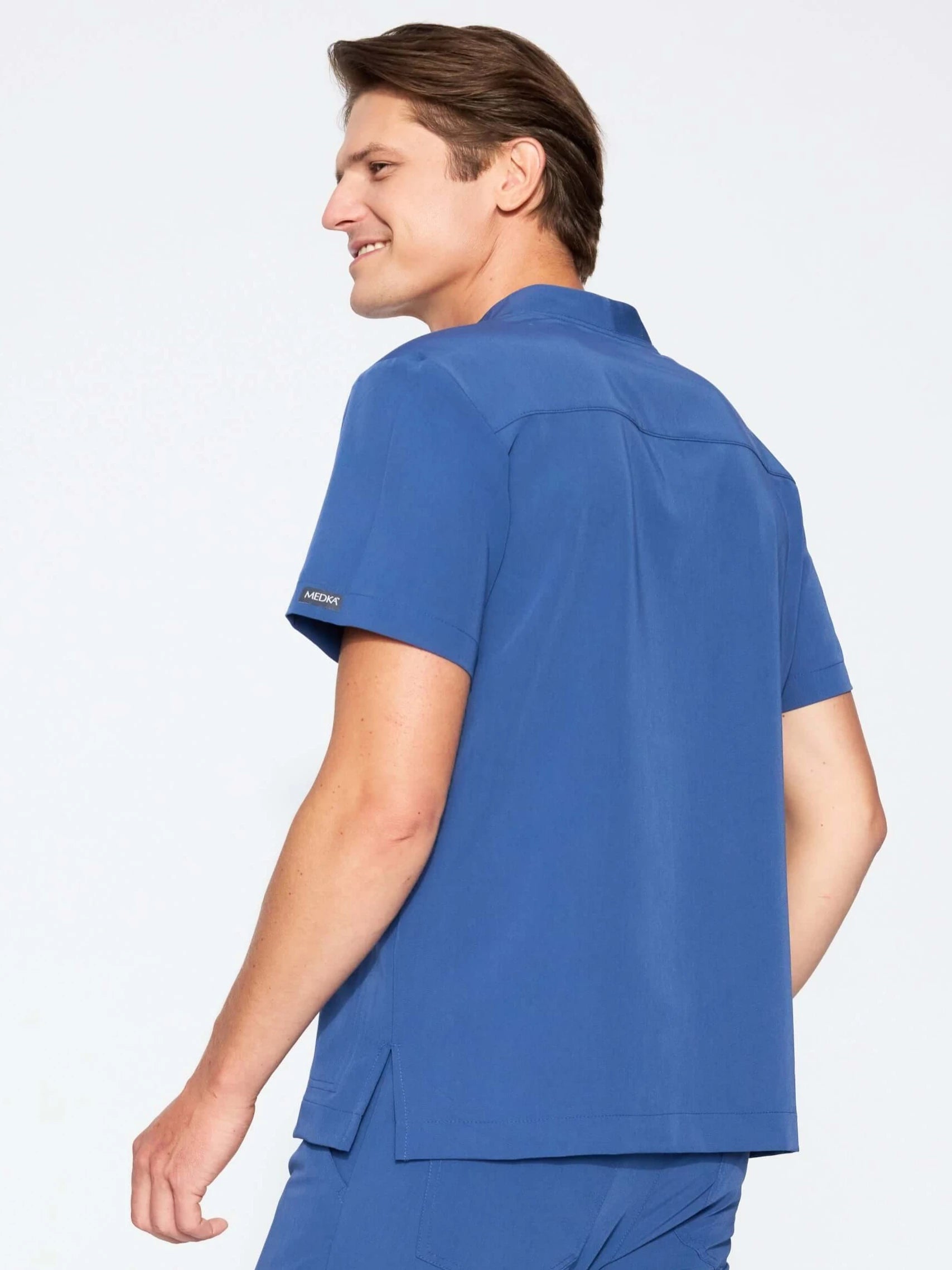 Modern neckline and horizontal stitching on the back emphasizing the men's style
