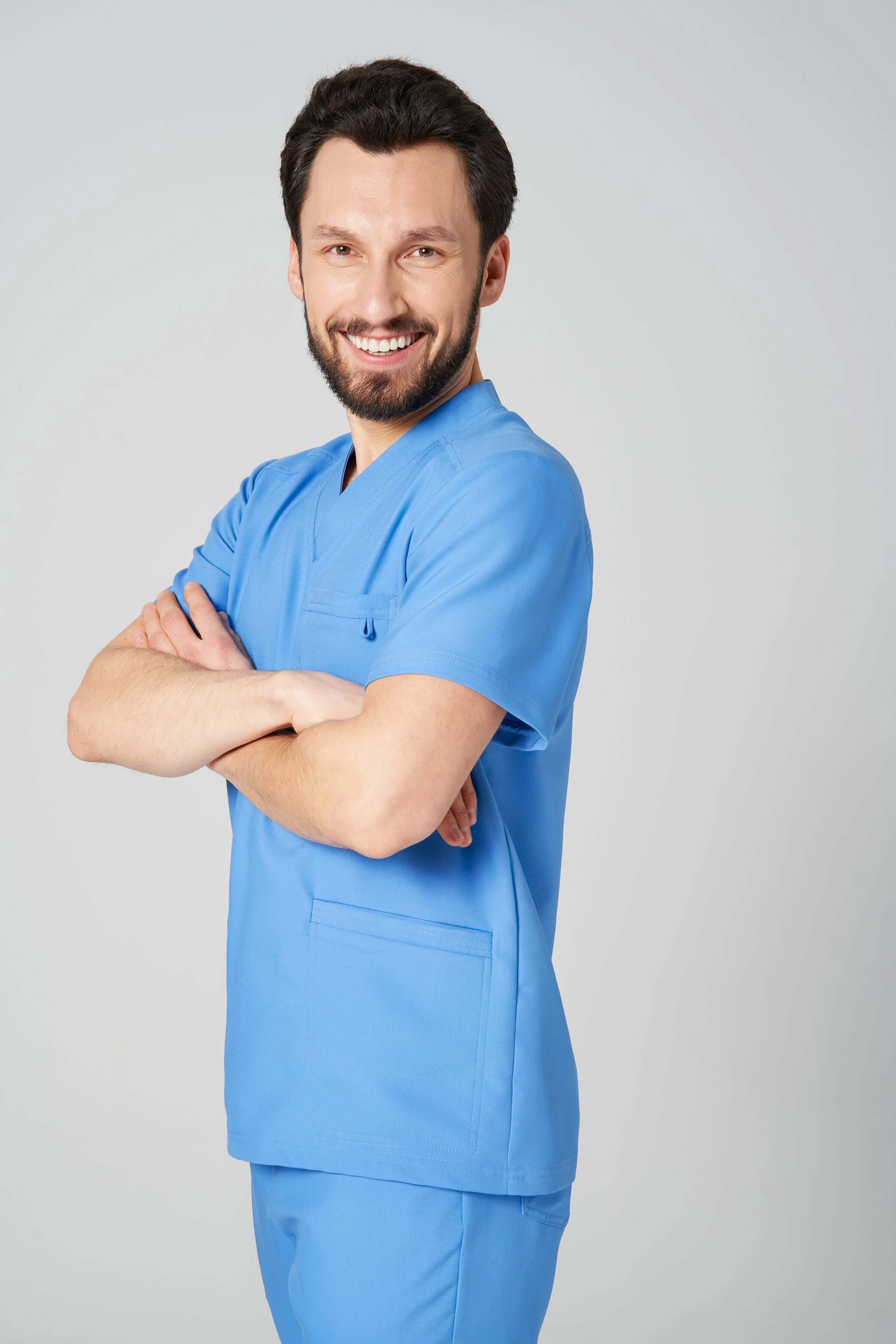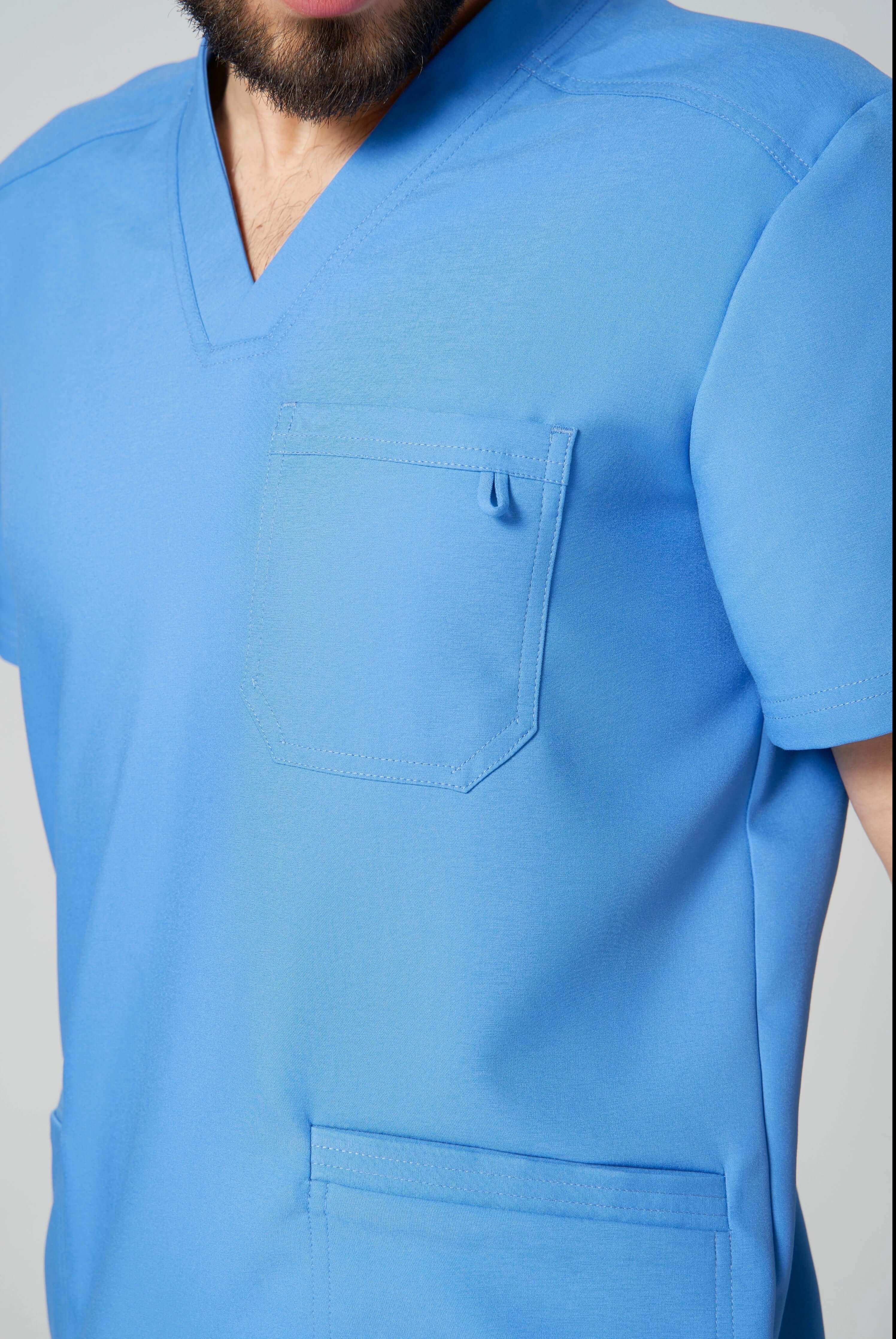 Modern nyakkivágás és vízszintes varrás hátulján hangsúlyozva a férfi stílusát