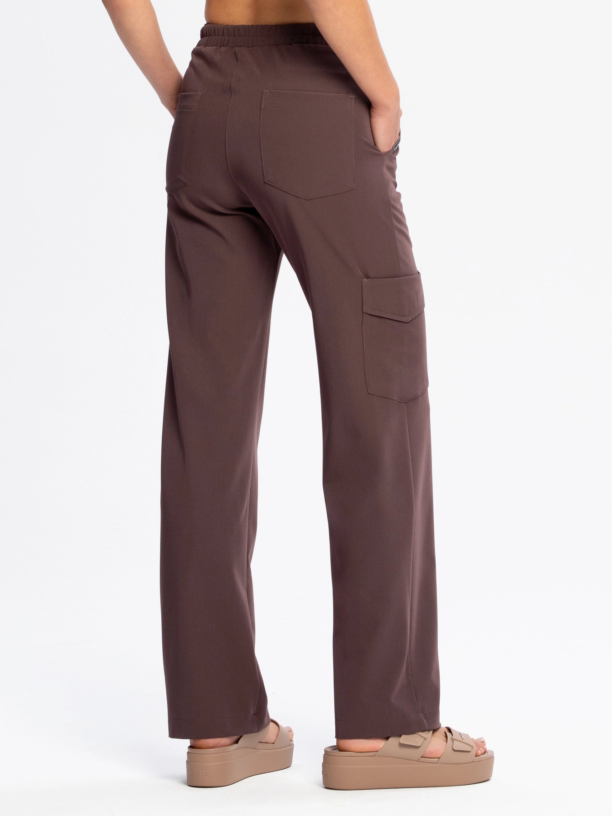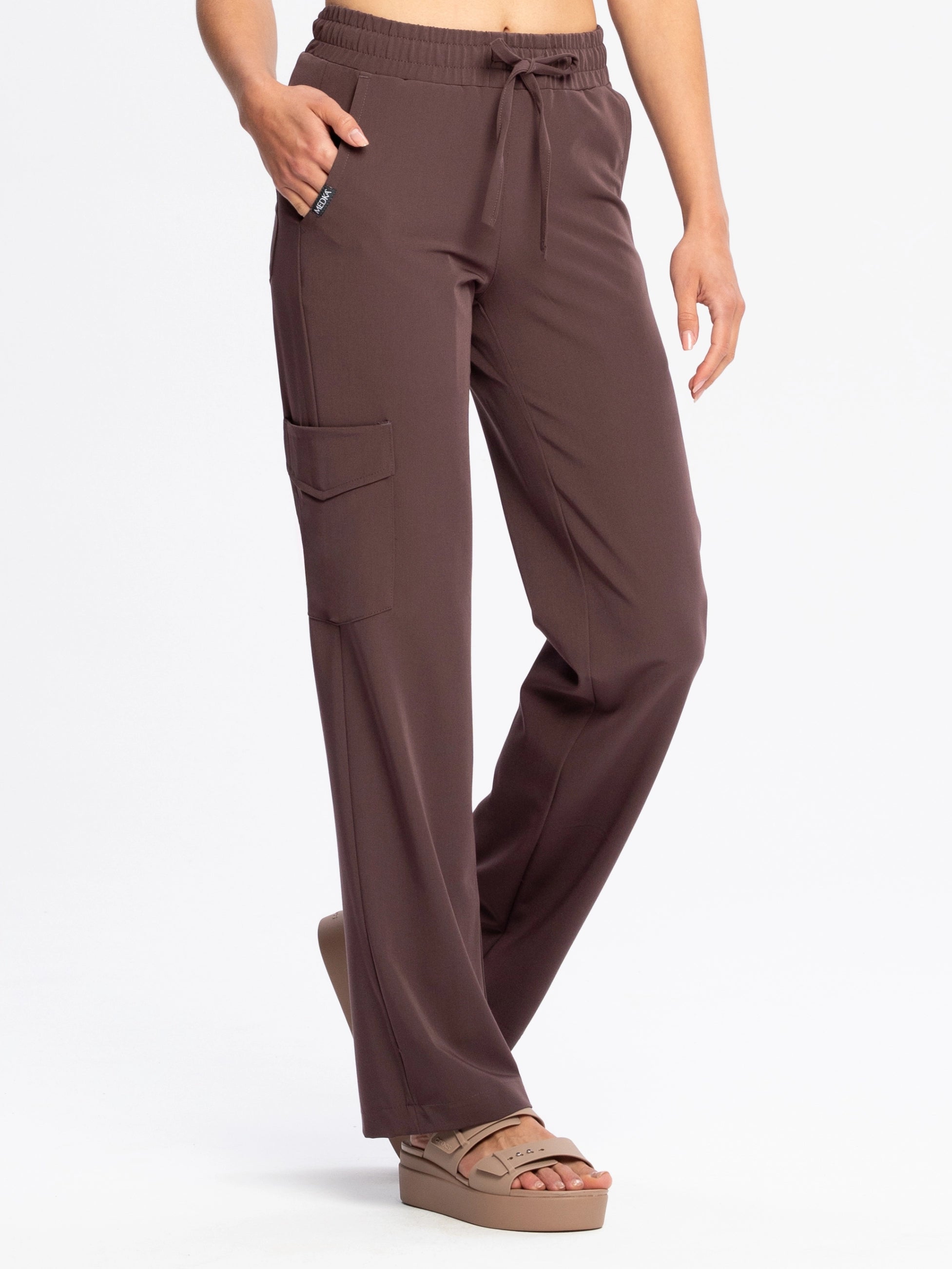 Spodnie medyczne damskie - FLOW z szeroką nogawką czekolada
