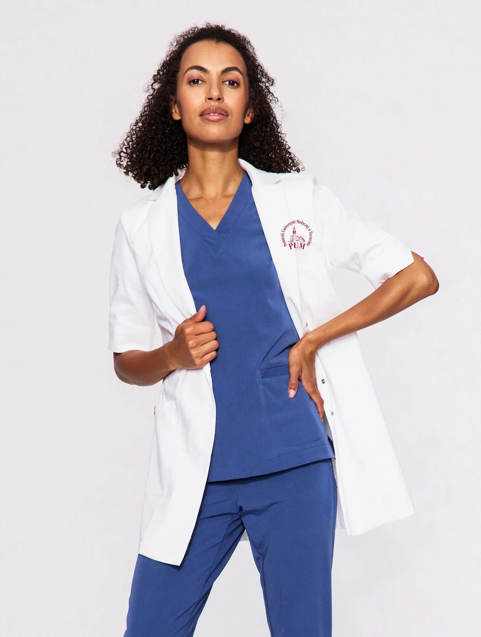 „Fabella“ moterų medicininė prijuostė su trumpomis rankovėmis su pum logotipu