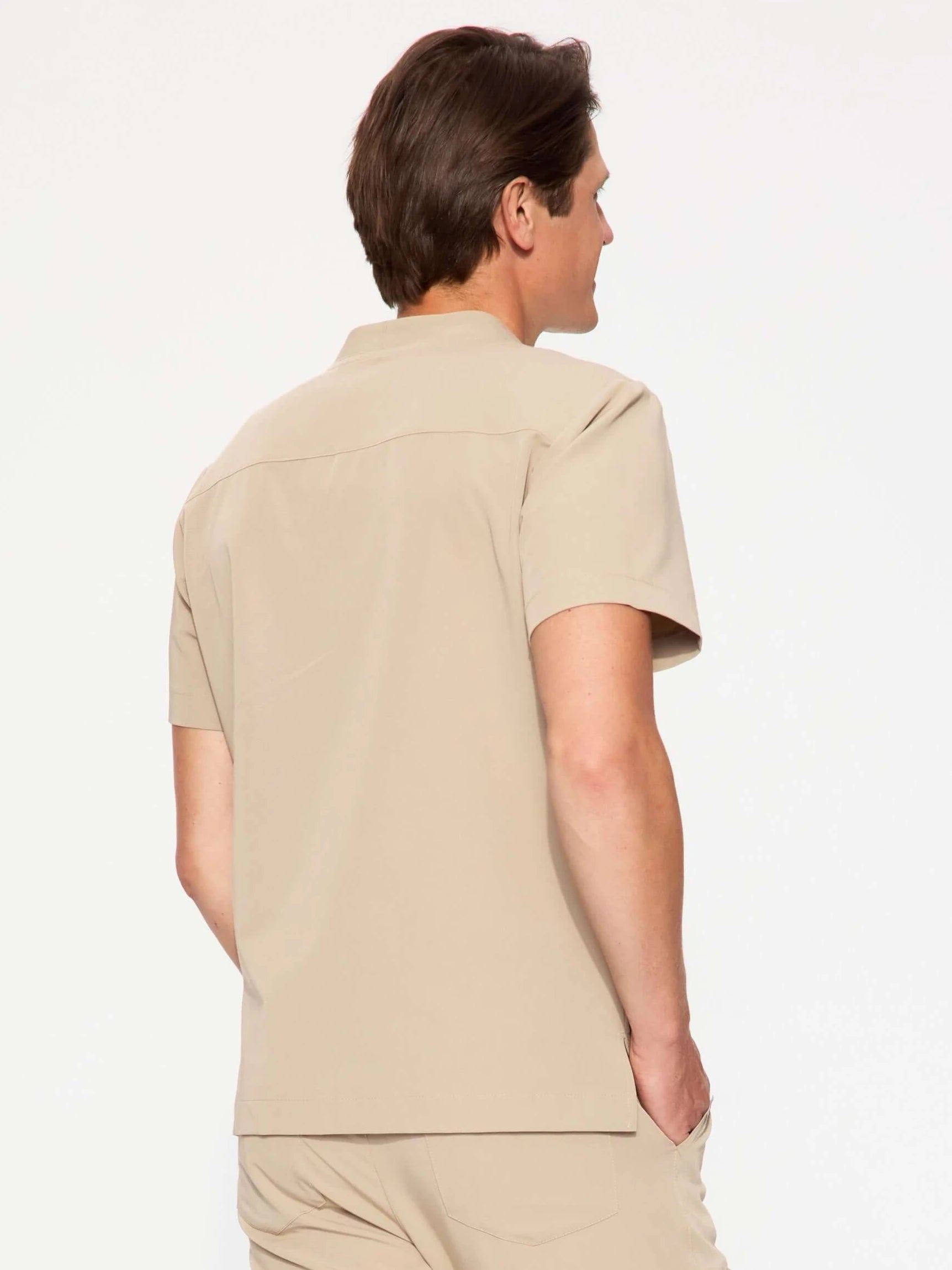 Nowoczesny dekolt i poziome przeszycie na plecach podkreślające męski styl