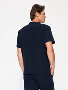 Nowoczesny dekolt i poziome przeszycie na plecach podkreślające męski styl