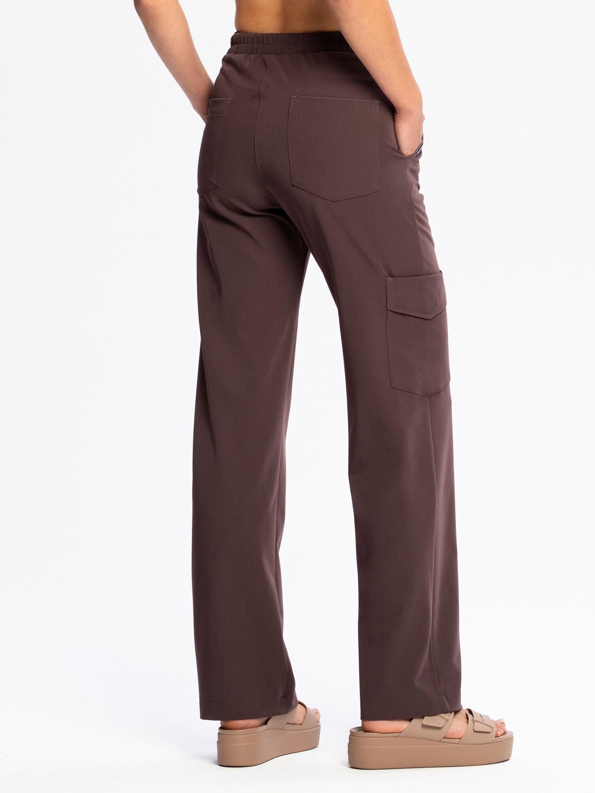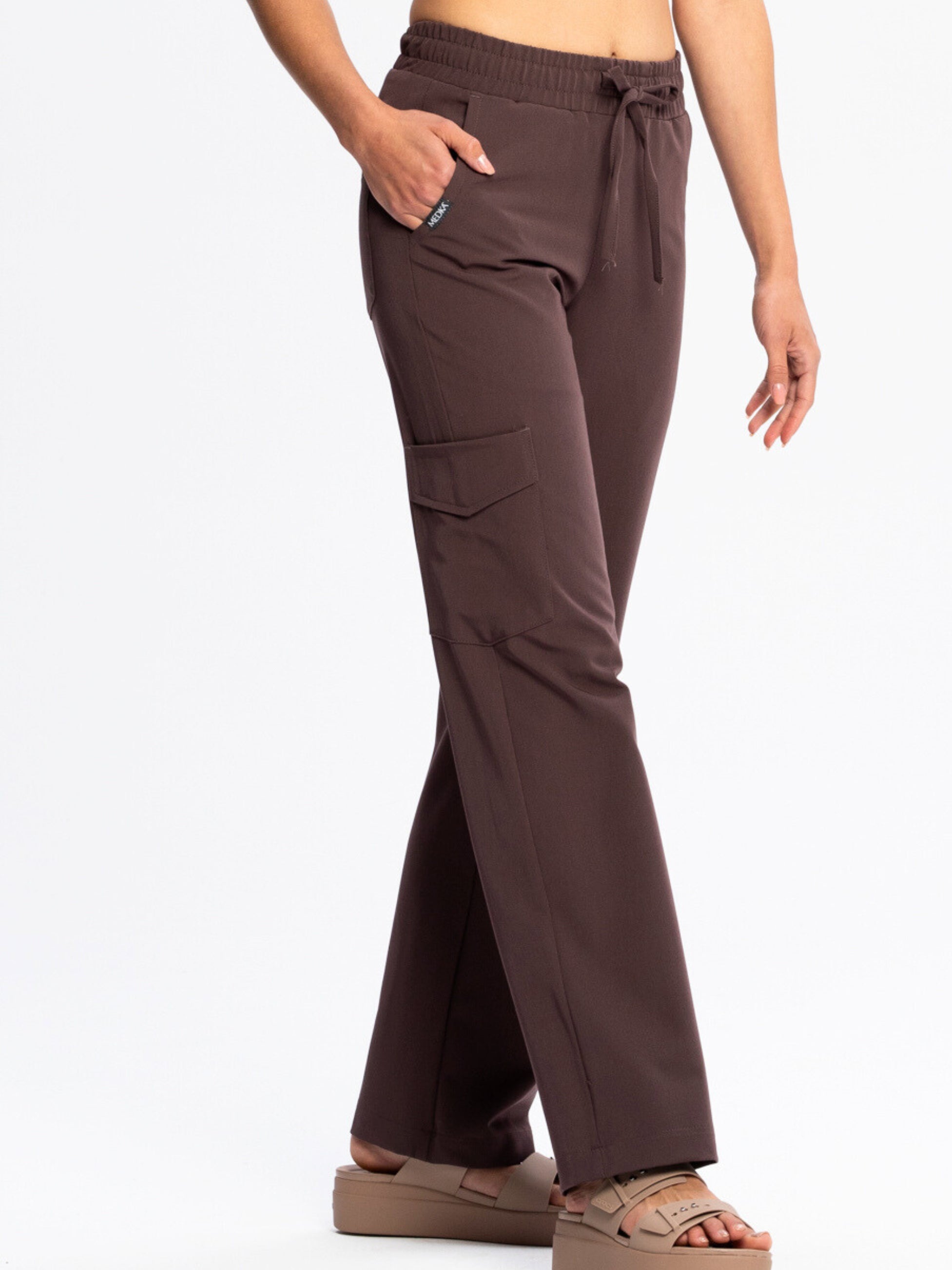 Spodnie medyczne damskie - FLOW z szeroką nogawką espresso