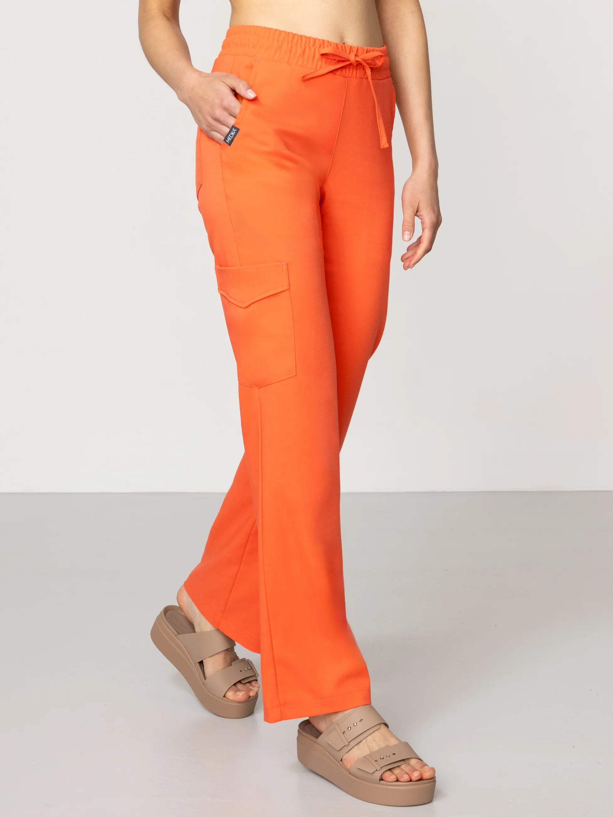 Spodnie medyczne damskie - FLOW z szeroką nogawką orange juice